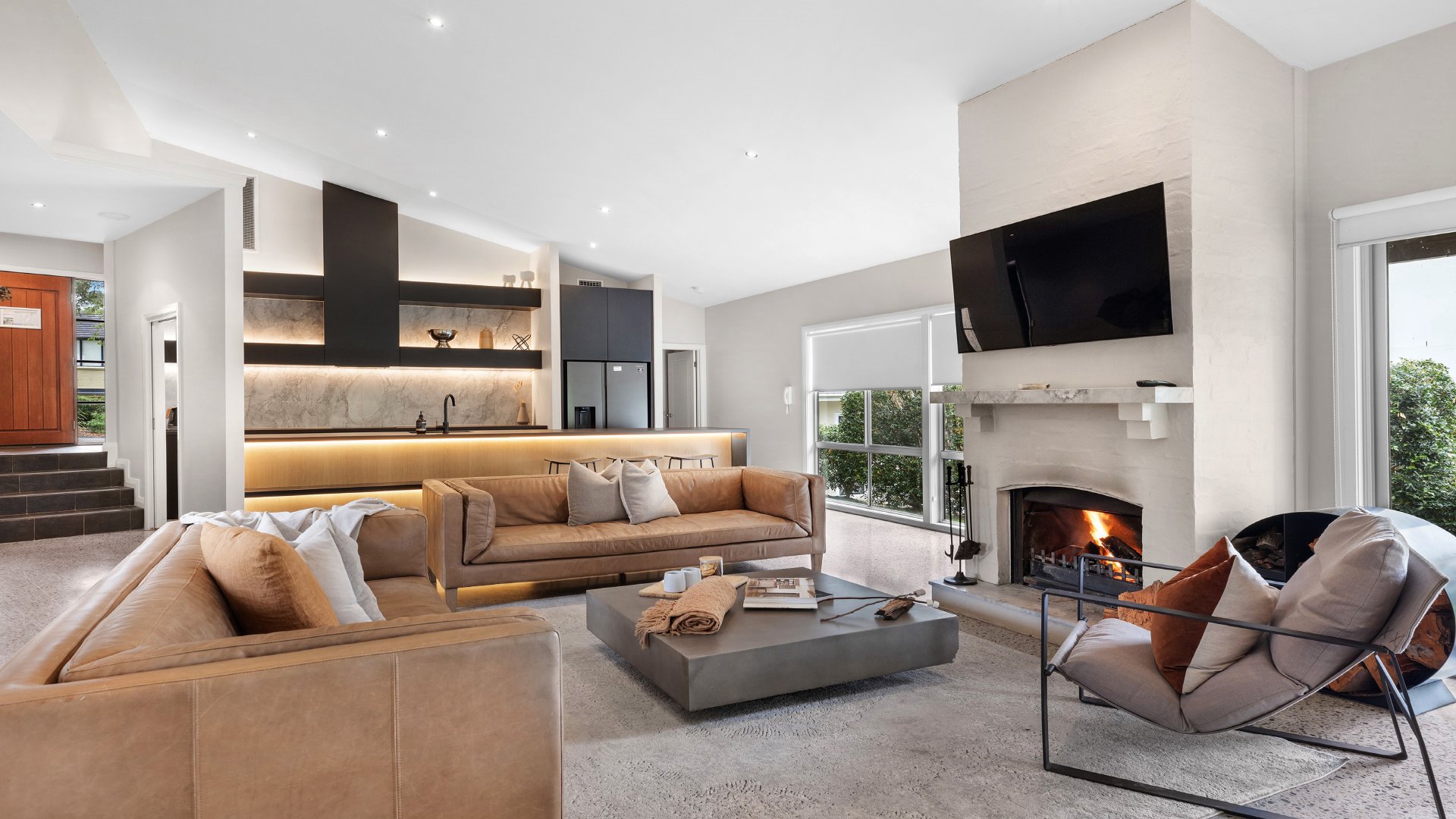 This stunning accommodation has just recently had a state-of-the-art makeover, with entertainment in mind. Complete with a custom made sleek black and oak timber kitchen and marble feature wall, relax and entertain in this luxurious open plan space whilst warming yourself in front of the open timber fire.