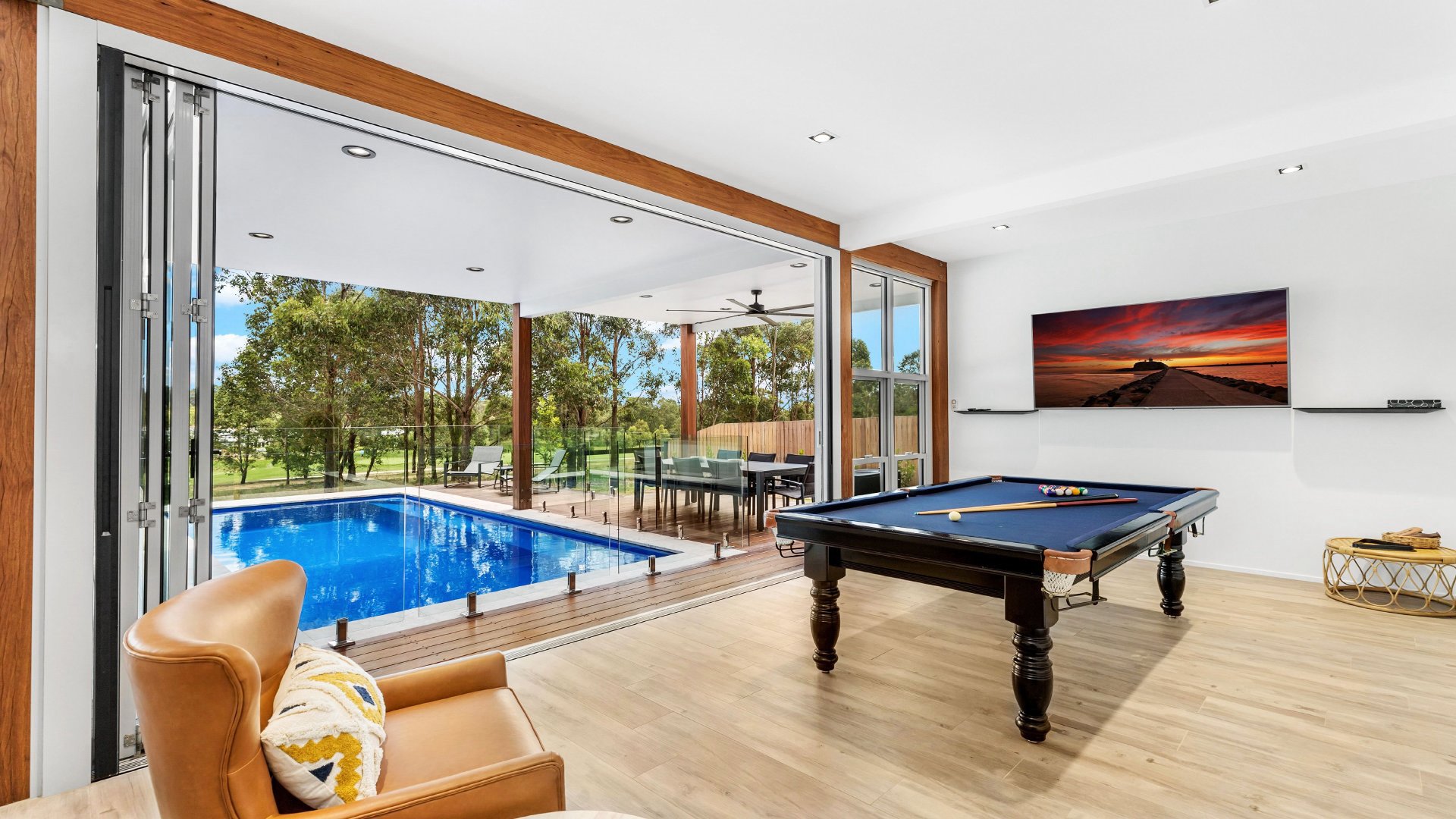 You can laze around in the comfy lounge area with TV and Foxtel Now, or just gaze out the large window overlooking the stunning views of the pool and 3rd Tee. The open plan living then spills out onto the back covered entertainment area, with a stunning pool and BBQ by simply opening the sliding doors. For those with a more competitive edge, there is also a pool table to keep you entertained after a hard day playing golf or indulgent day wining and dining around the Hunter Valley.